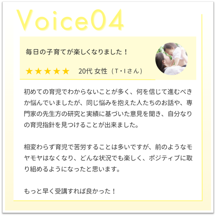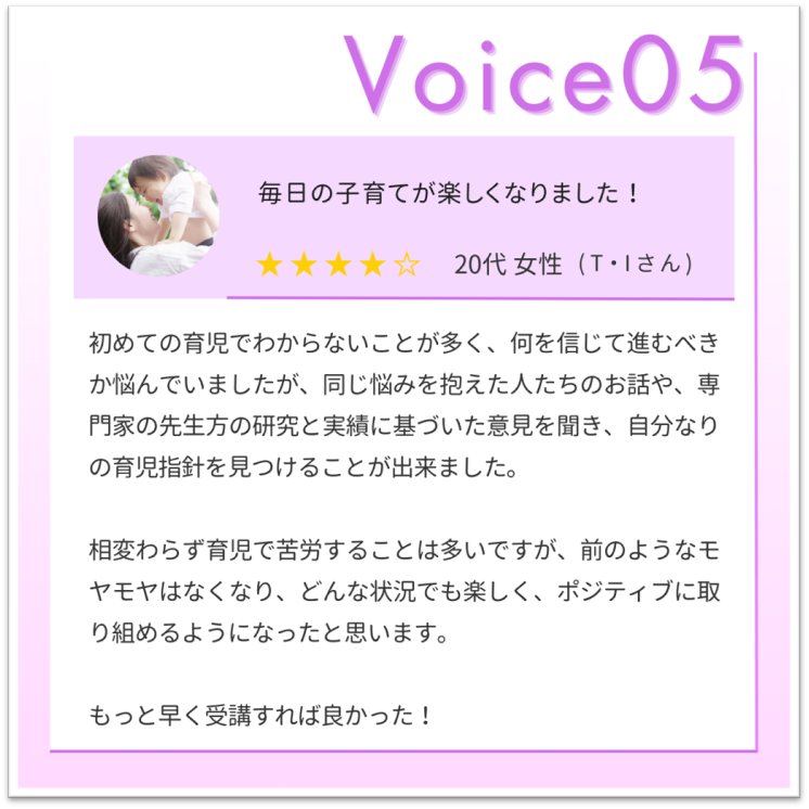 親だけでなく、園の先生も「安全の基地」になることを学びました。親だけが頑張りすぎなくても良いということが、とても参考になりました。